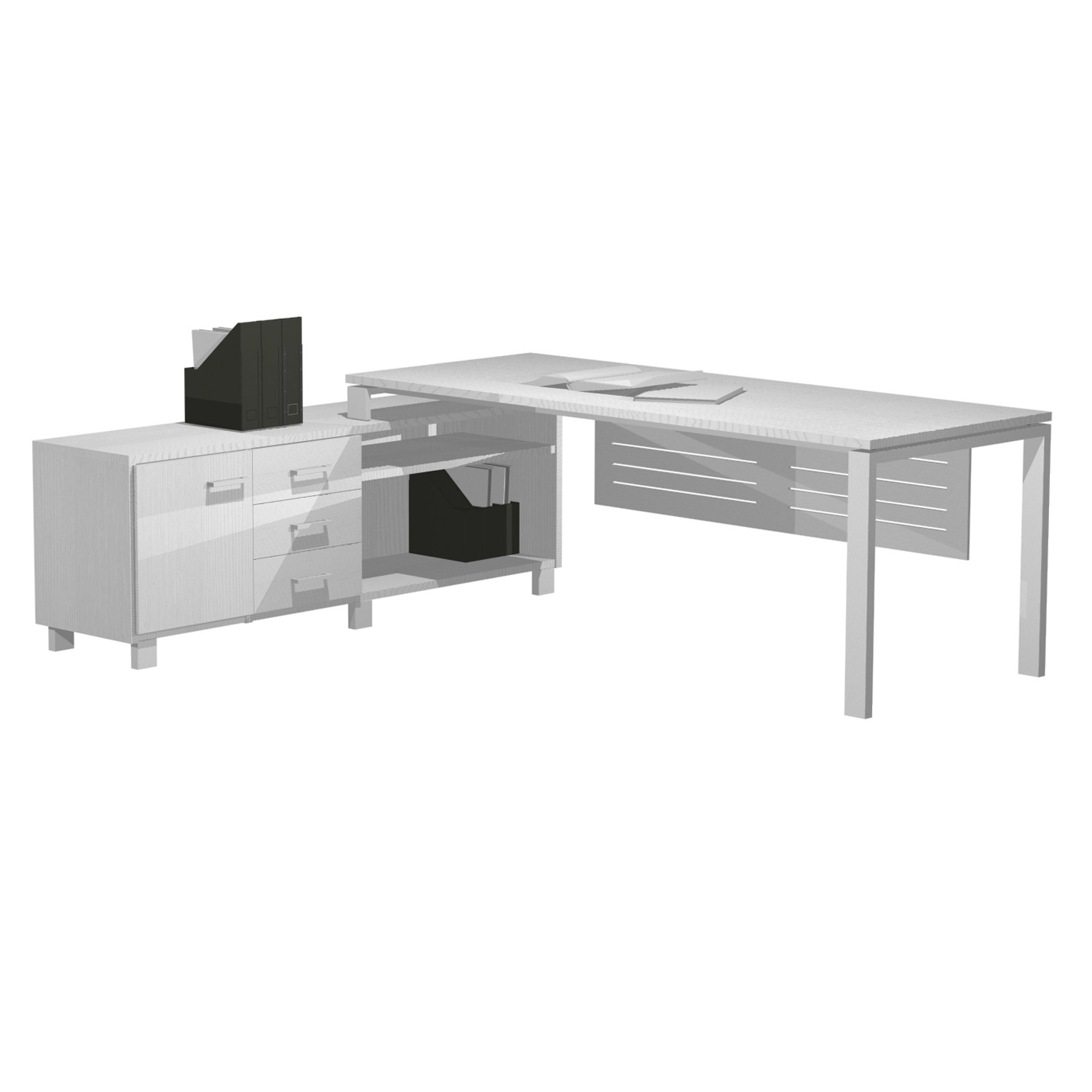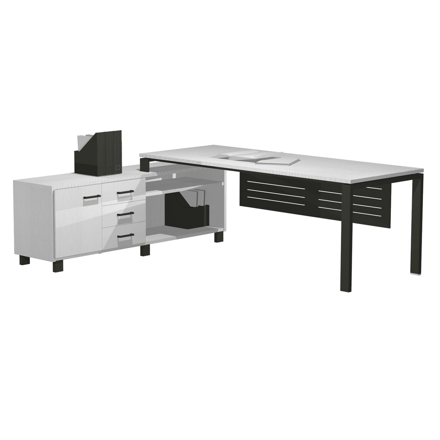 Management cabinet "Senso " series with integrated corner cabinet with a total dimension of 200/220x80/176,5x76,5 cm. The surface of the cabinet is made of chipboard class E1 and thickness 2.5 cm. It has metal legs & metal front.